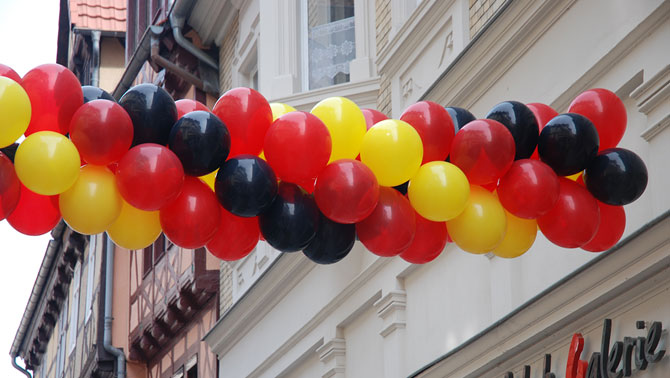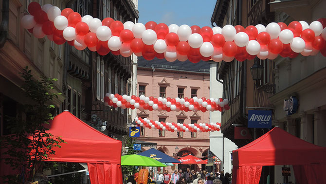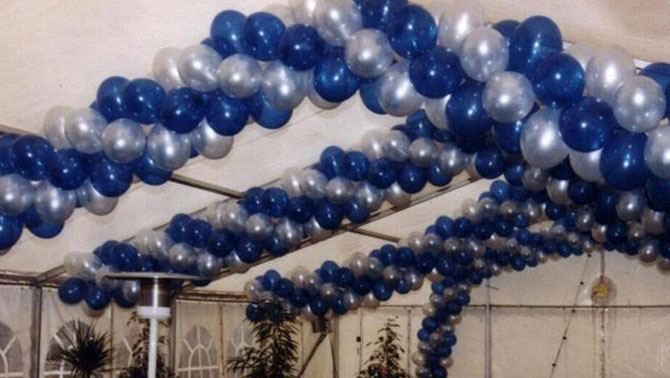 Unsere Dekoteam verzaubert Ihren Veranstaltungsort mit Luftballongirlanden in Ihren Wunschfarben.