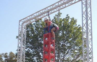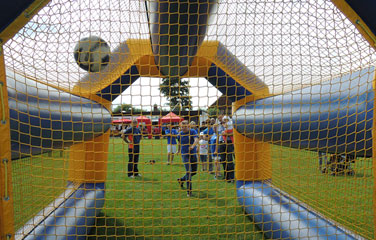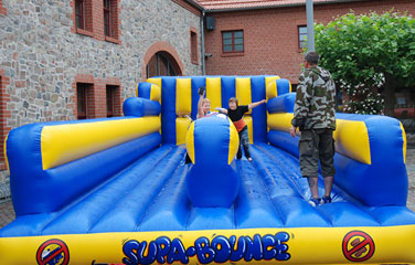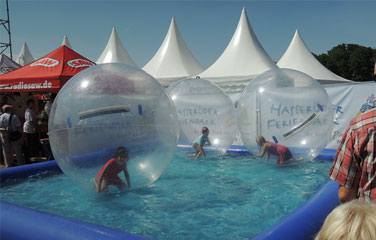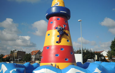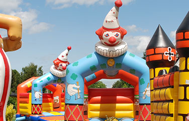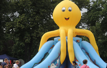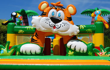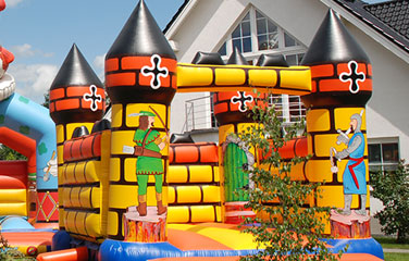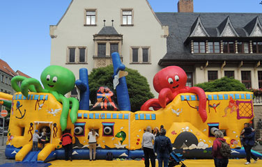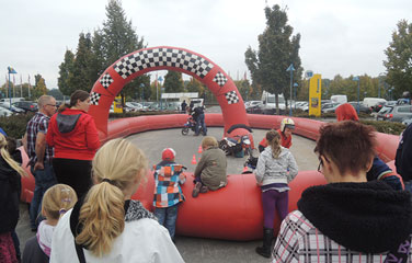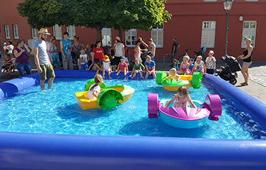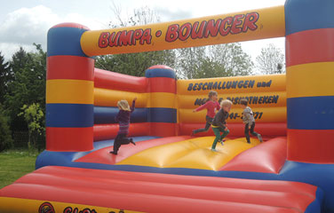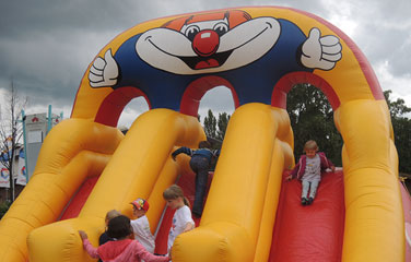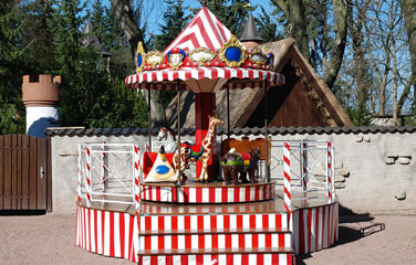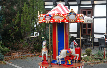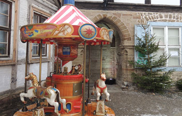 nostalgisches Kinderkarussell mit drei auf- und abgehenden Pferden